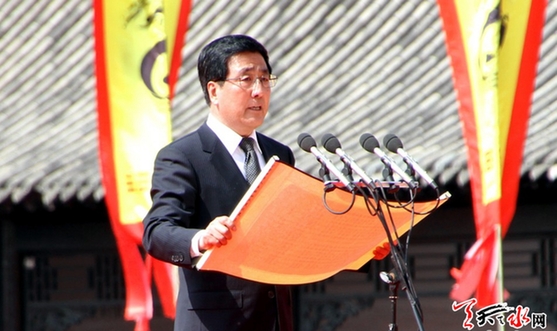 • 6月22日,2016(丙申)年公祭中华人文始祖伏羲大典在天水伏羲庙隆重举行。甘肃省省长林铎恭读祭文。