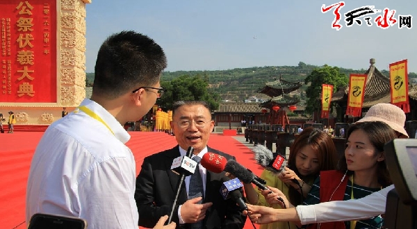 • 6月22日,2016(丙申)年公祭中华人文始祖伏羲大典在天水伏羲庙隆重举行。在大典仪式开始前,中共天水市委书记王锐接受CCTV等媒体采访。[查看详情]
