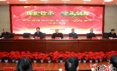• 12月3日,天水市博物馆恢复建馆40周年庆祝大会在市博物馆举行。[查看详情]