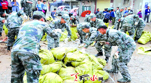 武山:军旗飘扬在抗洪抢险最前线