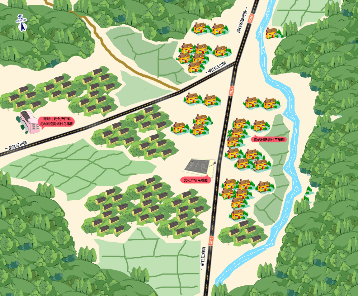 【秦州区娘娘坝镇南峪村旅游地图】点击地图上红色按钮或点击地图下方单图便可一键欣赏三维实景