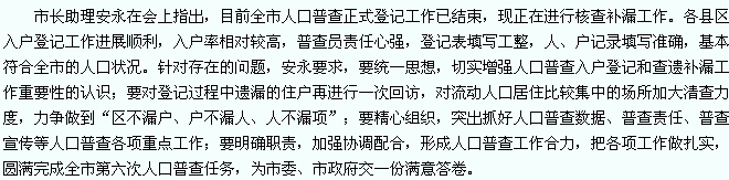 天天天水网讯(记者 王小亚 实习生 张彬霞)11月20日,市人口普查领导小组召开全市人口普查第三次工作会议。会议总结通报了全市第六次人口普查进展情况,安排部署了下一阶段人口普查收尾工作任务。