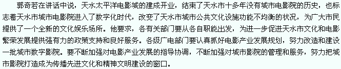 甘肃省广电局党组成员、副局长康坚宣布电影城正式开业
