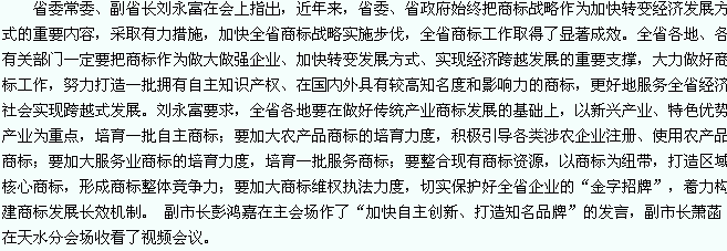 天天天水网-天水日报(记者 王小亚)11月26日,省政府举行2010年新认定中国驰名商标、甘肃著名商标视频授牌仪式,为“星火”、“佛慈”、“兰高阀”3件中国驰名商标,“白银”、“虎豹”等143件甘肃省著名商标的企业授牌,并颁发证书。截至目前,全省著名商标497件,中国驰名商标17件。
