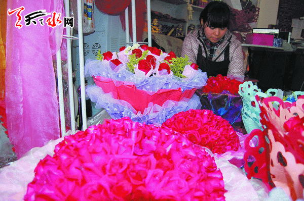 玫瑰花虽不能算作情人节的重头戏,但作为调节气氛的“利器”,在情侣眼中依旧占据着重要的位置,昨日记者在我市龙城广场看到,大街上来来往往的年轻人手中大都捧着鲜花。“今年的玫瑰花进货价格稍微涨了些,但我们不敢卖太高,因为走街卖花的太多了,卖得高销量就会差很多,所以价格和去年一样还卖每支15元。”龙城广场附近的鲜花店老板张女士告诉记者。