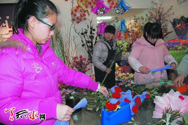 在民主路的一家花店内,记者发现各种鲜花的价格一目了然,红玫瑰分8元一枝、10元一枝和15元一支三种,百合花35元一枝……许多年轻人正在挑选鲜花,生意颇为红火。“如果提前预定,我们基本上都是按8元一枝预订的,如果预订得多还可以适当地优惠,但是越靠近情人节价格就会越贵。”该店老板告诉记者,选购鲜花的消费者一般分为两种,一部分是未婚的年轻人,主要以预订玫瑰花为主,有求爱的意思,还有就是已婚的人,预订百合花的居多。