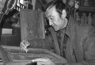 只要打听到哪儿有制作木雕工艺品的高手,他都要前去拜访取经学艺。我市副高级木雕艺术师梁宝宝、副高级竹雕艺术师王占云都曾给予他精心指导。