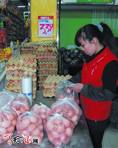 张老板在我市经营鸡蛋生意有好几个年头了,谈起近期鸡蛋价格,她也是无奈地摇起了头。“去年每斤价格最高的时候达到过5.5元,从正月十五之后鸡蛋价格就一直往下掉,现在零售价都已经跌倒每斤3.3元了,我都不敢多进货,怕万一卖不出去价格又下来。”张老板说。