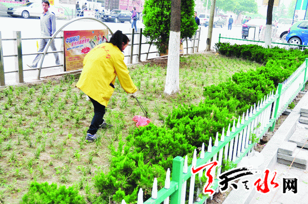 5月24日下午,记者来到伏羲庙,看到庙内环境清幽整洁,而庙外步行街上的花圃里却垃圾点点,环卫工人不时地在路段上来回走动,捡拾花圃里和路面上行人丢下的垃圾;