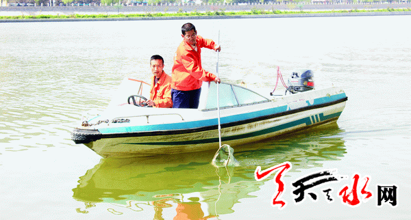 5月20日下午,当记者走在南大桥上时,看到两位天水湖管理处的工作人员驾驶着游艇正在打捞湖上漂浮物,待两位工作人员上岸后记者对他们进行了采访。一位工作人员说,现在我市市民的素质有所提高,往湖里随意扔垃圾的不文明行为明显减少,不像前几年藉河风情线刚刚建成,很多市民来此游玩时往湖里随意扔东西,弄得湖里脏兮兮的。现在湖里飘着的漂浮物大都是南大桥上的行人丢弃的,被风吹落在湖里,他们发现后打捞上来,要不然,在湖里飘的时间长了会影响湖水水质,也让人看着不美观。