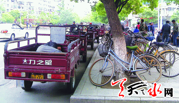 图一:秦州区合作巷北口成了架子车、三轮车、自行车的自由市场。