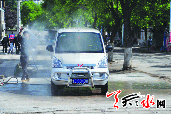 图二:秦州区滨河西路,洗车生意做到了马路中间。