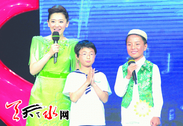 (图中为武山娃马明萱、左为央视主持人月亮姐姐)