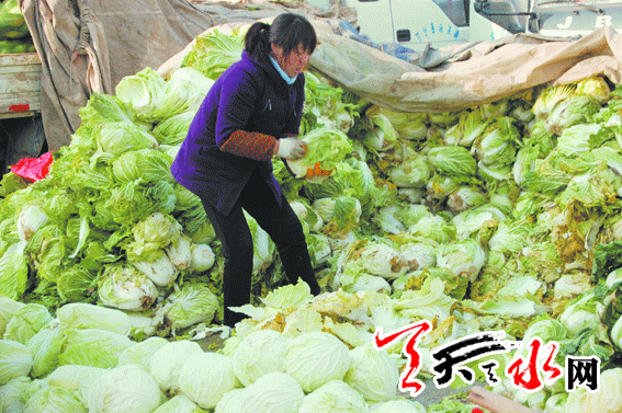 22日上午,家住秦州区二十里铺的张师傅夫妇正在院子里整理白菜,张师傅的妻子说:“有菜贩到地头收菜,但价钱给的低,我们送到附近批发市场,批发价能到两三毛一斤。”张师傅说,为了多卖些钱,他们都是将白菜运到批发市场去卖。