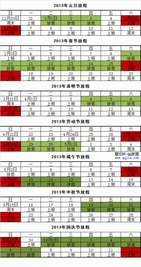 关于2013年部分节假日安排的通知