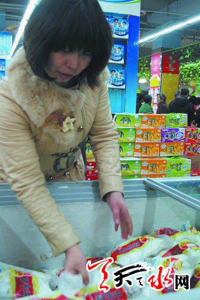 正在超市挑选水饺的王女士说:“在家里包饺子很麻烦,一袋速冻水饺5.9元,有25个,平均0.2元/个,比饭馆卖的便宜多了。”她准备多买几袋,让一家三口在冬至都能吃上饺子。