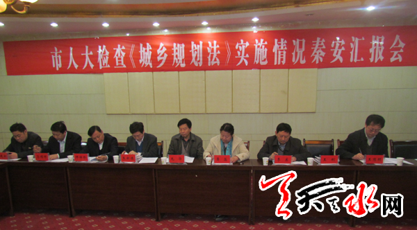 在3月15日召开的座谈会上,天水市规划局负责人就贯彻实施城乡规划法的总体情况做了汇报。截止2012年底,市县两级规划管理机构全部建立,为全市城乡规划管理提供了组织保证,各县共完成城乡规划50个,村庄规划308个。