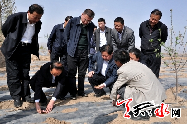 马世忠、王锐非常重视和关心甘谷县的抗旱生产工作。在听取了甘谷县抗旱春耕生产和东北部农村饮水安全工程有关情况后,马世忠、王锐强调,甘谷是全市旱情最为严重的县区之一,县委、县政府主要领导和分管领导要牢固树立“抗大旱、保民生、促春耕”的思想,把主要精力放在抗旱生产上来,领导包抓的责任要落实到位。乡村两级干部要紧急动员起来,全部投入到抗旱生产中去,千方百计解决好受旱群众的饮水困难,对重点区域、重点村、重点户要格外重视,确保不漏一户、不漏一人,同时指导帮助群众做好田间管理、作物改种等工作,尽可能避免因大旱而出现大荒现象。