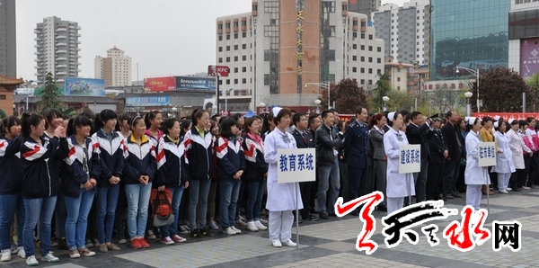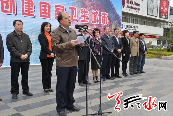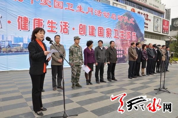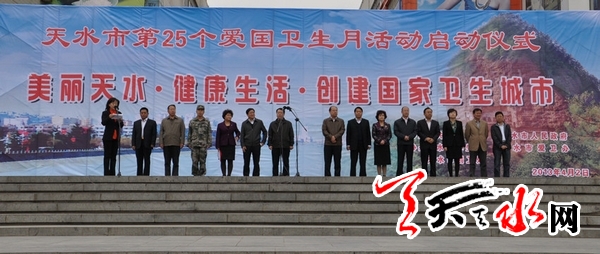 天天天水网讯【记者 马放】4月2日上午,天水市在龙城广场启动第25个爱国卫生月活动,这次活动的主题是“美丽天水•健康生活•创建国家卫生城市”。