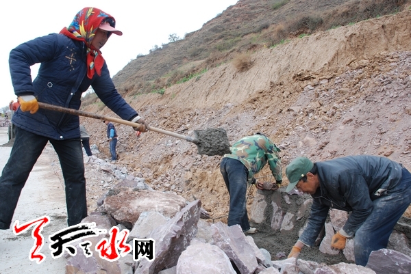 4月2日,武山县城沿公路龙台至沿安段通村公路正在进行道路排水渠工程建设。城沿公路全长35公里,起点位于城关镇家坡村,终点为沿安乡高九村。前段城关至龙台段16公里已经改造完成,后段龙台乡至沿安乡通村路,预计今年底完工。该公路的建设完成将解决沿线3万多人的出行难问题,并带动老君山森林公园旅游业的发展。记者 吕薇 实习生 陈力摄