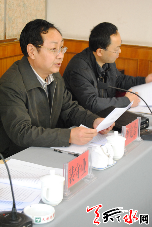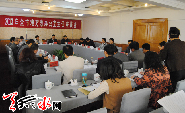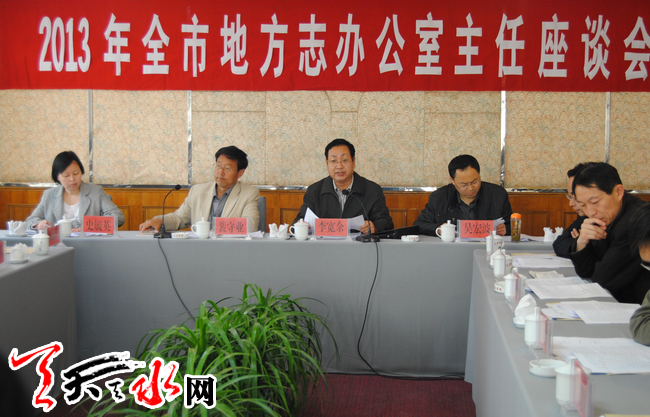 天天天水网讯(记者 张文都)4月16日,2013年天水市地方志办公室主任座谈会在市迎宾馆召开,会议要求,各县区及相关部门要正确认识我市地方志工作面临的新形势,以昂扬的斗志,扎实苦干,攻坚克难,编修出更多无愧于时代、无愧于人民的精品志,为推动全市文化大发展大繁荣做出努力。