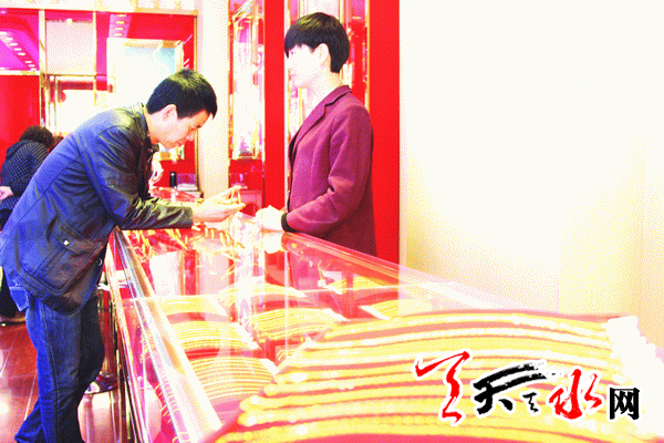 天天天水网讯(记者 辛磊)4月16日,一名顾客正在柜台前询问金首饰的价格。在柜台前询问金首饰的价格。
