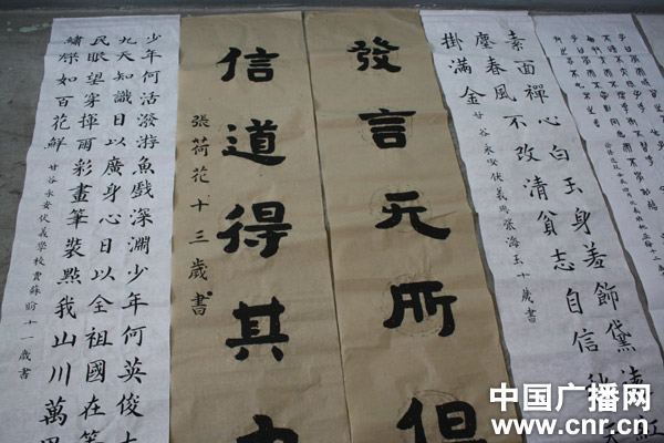 “写字可以让我们的心静下来,学习效率会提高一些。”今年已经读六年级的张洁从学前班时就开始学习书法,她告诉记者不仅每天在学校里上书法课,回家还要练习,现在自己非常喜欢书法。