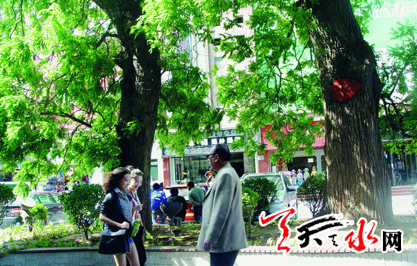 天天天水网讯(记者 赵晓玲)5月7日下午,三三两两的市民从秦州区中华西路步行街古树下走过。