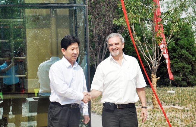 天水市委常委、秦州区委书记张明泰与德国GFA咨询公司首席顾问胡波特•福斯特先生,为教育中心落成揭牌。天水市人大常委会副主任谢简平、天水市政协副主席杨发元出席落成典礼。