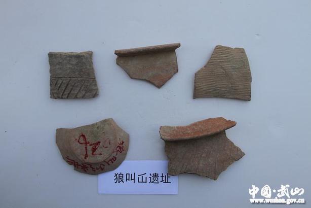 狼叫屲遗址位于武山县鸳鸯镇苟家山村,为旧石器时代、新石器时代文化遗址。该遗址座落在大沟南坡山塬上,地处渭河与榜沙河之间,依山傍水,避风向阳,原来植被茂密,宜于原始先民繁息,保护范围面积约85万平方米。文化堆积达1米,距地表3米。遗址断面暴露有坚硬的白粘土、红烧土等古人类文化遗迹。采集到原始人头骨化石、颈骨化石、肋骨化石以及打制石器等古人类文化遗物标本,经鉴定属旧石器时代晚期,是与河套人同期的古人类活动遗址,距今3.8万年,考古界定名为“武山人”。