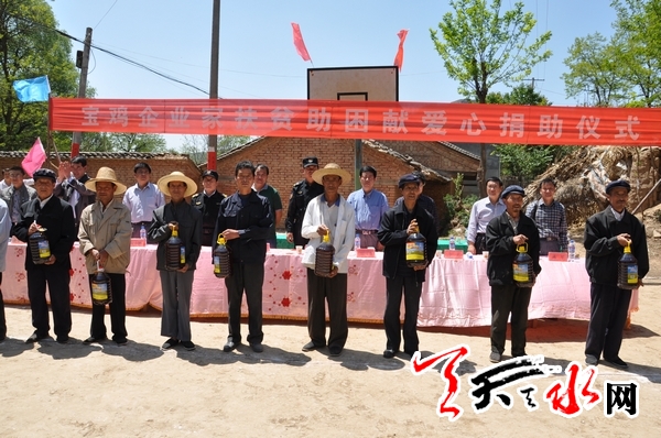 5月12日,经宝鸡日报社牵线搭桥,宝鸡市应急救援协会组织宝鸡鑫泽钛镍有限公司、陕西华电电器有限公司、宝鸡市建鑫机械设备制造有限公司、宝鸡巨龙铁路器材有限公司、宝鸡市一德金属材料有限公司到秦州区汪川镇成沟村举行扶贫助困献爱心捐助活动,为成沟村困难群众、苏成中学、成沟小学捐助了价值4万余元的生活用品和学习用具。 本报记者 成雄 摄