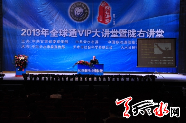 天天天水网讯(记者 孙镇)5月18日,陇右讲堂第39讲在秦州大剧院开讲。国防大学战略研究所所长、博士生导师金一南少将作了《苦难辉煌——对国家和民族命运的思索》专题讲座。天水市委常委、纪委书记李美华,市人大常委会副主任萧菡,市政协副主席王钦锡以及市直单位干部职工,部分驻市部队官兵聆听了讲座。