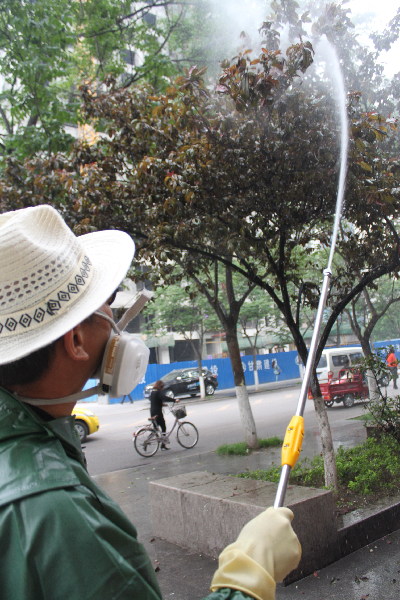 随着天气的转暖,天水城区的各种树木进入了病虫害高发期,特别是近期秦州区民主路、建设路行道树掉蚜虫“粘液”困扰行人的现象较为严重。秦州区园林管理处积极启动了病虫危害预警机制,由于该路段树木数量较大,交通状况复杂,喷施技术要求较高,区园林处采用高压手推式喷药车对两侧的行道树已于5月初进行了全面的化学喷洒防治,同时为避免给行人带来不便,专门进行定点、定时、定量喷药,并为喷药人员购买了专业的防化面具,确保了“安全、有效”的喷药和人员的安全。目前,在有效缓解病虫危害的同时,减少了的困扰,保证了植物正常生长和良好的观赏效果。(毛敏)