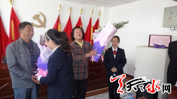 为了表达对杨荫浓、米继承的敬意,社区工作人员代表全体党员、居民还为他们两位赠送了鲜花。