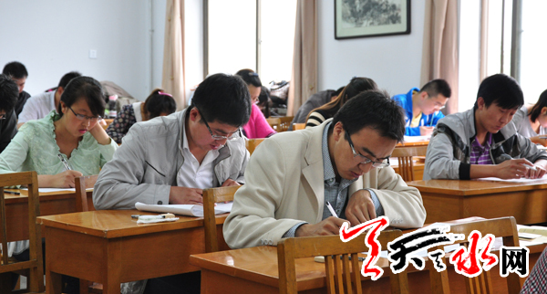 天天天水网讯【记者 孙镇】 5月25日,天水市2013年从优秀村干部和大学生“村官”中考录乡镇机关公务员笔试在市委党校举行。163名来自两区五县农村基层的优秀村干部和大学生“村官”参加了考试,将竞争22个乡镇机关公务员岗位。