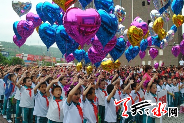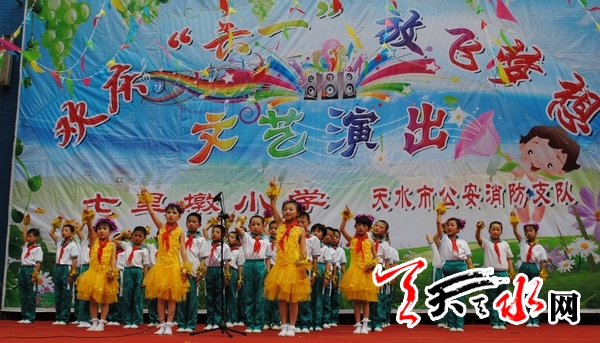 天天天水网讯【记者蔚军平】5月26日,由秦州区七里墩小学师生与市公安消防支队官兵精彩呈现的欢庆“六一”放飞梦想文艺演出在天河广场举行。
