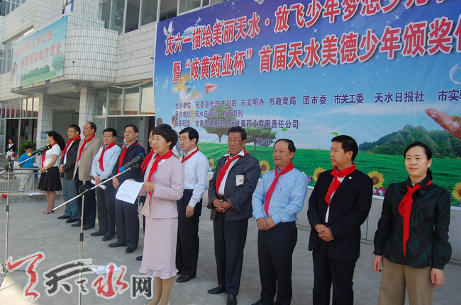市人大副主任王子生、副市长霍卫平、市政协副主席雷传昌及联合主办“美德少年评选”活动的市委宣传部、市文明办、市妇联、市关工委、团市委、市教育局、天水日报社领导,独家冠名单位甘肃昊峰集团岐黄药业有限责任公司领导,学生代表、受表彰少年代表共600多人参加仪式。