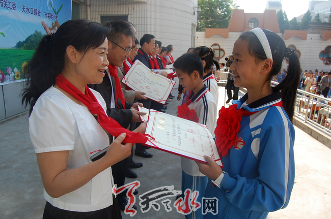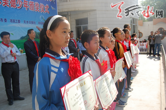 表彰仪式现场,还举行了“描绘美丽天水·放飞少年梦想”少儿书画展示活动。