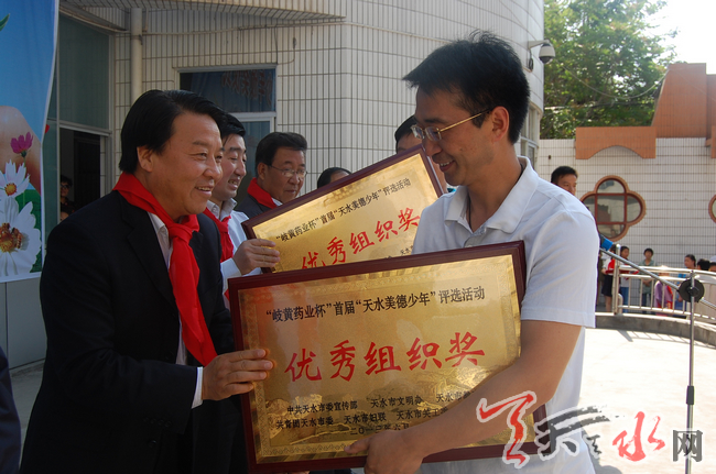天天天水网讯(记者徐强 陈飞 陈娟 闫琦玉)6月1日,“岐黄药业杯”首届天水美德少年颁奖仪式在市实验小学举行。“十佳美德少年”和“美德少年”代表在现场受到表彰。