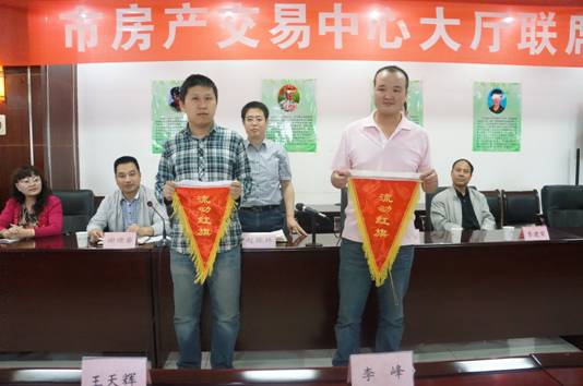 2013年5月30日下午5时,天水市房地产产权交易管理中心召开大厅联席会。会议回顾总结了自国务院个税新政出台三个月以来中心的工作情况,表彰了近一阶段各个岗位上涌现出来的先进个人,给获得先进的窗口授予流动红旗,动员全体干部职工进一步统一思想,提高认识,在改善窗口服务质量、提升房屋登记水平上实现新突破。中心还邀请了法律顾问李建荣、张晓春指导会议。市房地产管理局副局长、市房产交易中心主任赵振林出席会议并做了讲话,中心副主任谢晓睿主持会议。