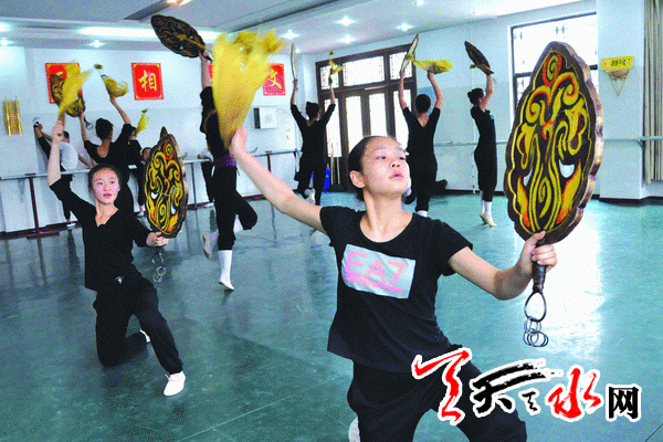 天天天水网讯(记者 孙燕芸)6月4日,天水市歌舞团的演员正在排练节目。2013年公祭伏羲大典和伏羲文化旅游节即将来临,承担节会文化活动的天水市歌舞团、天水市秦剧团等单位组织演职人员抓紧时间精心排练节目,力争使展演活动达到高水平、高标准。