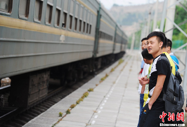 6月6日,高考前一天,甘肃省天水市新阳镇高三的学生们6时就早早起床了,他们匆匆收拾了生活用品和高考必备品,简单吃完早饭后,就赶到新阳镇火车站了。新阳镇以及周边渭南镇、三阳川等地的高考考生,每年都要从这里赶往天水市参加高考。对于地处渭河流域的新阳镇火车站来说,每年高考前夕,这个小站便迎来了热闹的时刻。图为学子们怀穿着梦想,准备奔赴人生的新起点。杨艳敏 摄