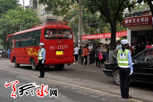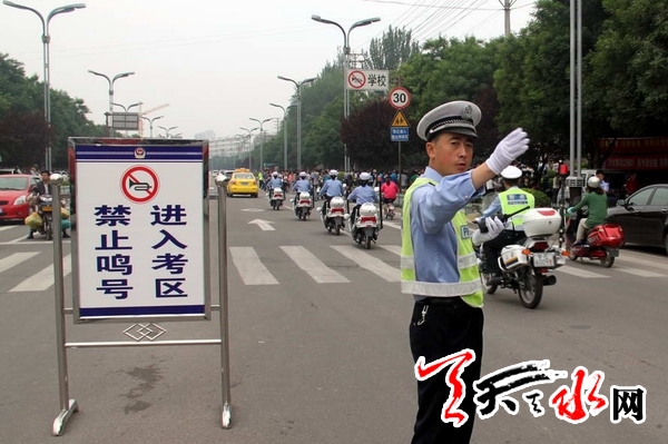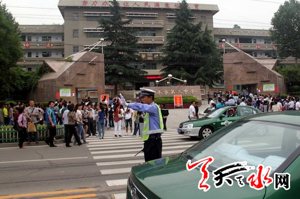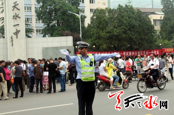 天天天水网【记者蔚军平 通讯员王世强 刘冀远】6月7日,一年一度的高考拉开帷幕,天水市33204名考生在全市两区五县7个考区、33个考点、1114个考场参加高考。为了给广大考生营造一个宁静的考试环境,保障各考点周边道路交通安全、有序、畅通,天水交警坚持“以人为本”和“一切为了考生”的理念,出动500余名警力,全力以赴为高考考生保驾护航。