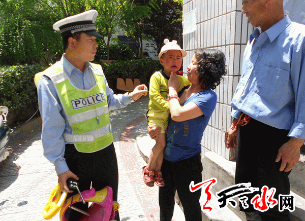 天天天水网讯【记者王建华】大人领着不到两岁的小孩出门玩耍,孩子却不慎走失,一个人跑在机动车道上玩,幸被执勤交警及时发现并联系送回,而交警的举动也让孩子家长深受感动。