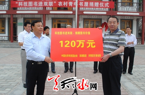 在本次“科技图书进双联”活动中,中国光华科技基金会、浪潮集团有限公司将为秦州区中梁乡的18个行政村、武山县马力镇周庄村和麦积区新阳镇王家庄共20个双联村,各捐赠科技图书3000册、5个书架,总价值120万元。