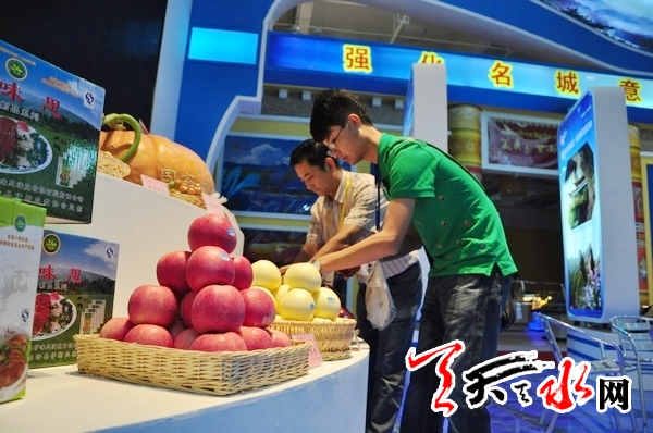 在甘肃国际会展中心,记者看到,占地面积180平方米的天水展区宽敞明亮,布局别致,特色明显。既有声、光、电及LED电视墙等有效载体宣传展示天水形象,又有十二块灯箱展板,图文并茂地展示着关中—天水经济区、天水(国家级)经济技术开发区、天水国家农业科技园区、装备制造业、天水商贸城、航天育种、农业产业化(果品、畜牧、蔬菜)、交通运输、知名品牌、投资环境、历史文化名城、优秀旅游城市等方面的情况。展区中央,层次分明的展示柜上,摆放着秦州大樱桃、花牛苹果、天水雕漆、武山鸳鸯玉等我市特色产品。据市商务局负责人介绍,截止目前,我市兰洽会布展工作已全部就绪。本届兰洽会我市参展企业达到了53家,参展的产品品种达到了60个大类1200多个品种,是历届兰洽会参展企业和参展产品数量最多的一次。