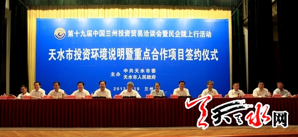 天天天水网兰州电(记者 郝勤学 孙镇)6月19日下午,天水市委、市政府在兰州举行天水市投资环境说明会暨重点招商项目签约仪式,向国内外客商推介天水招商项目和投资环境,并就112项重点招商引资项目进行集中签约。