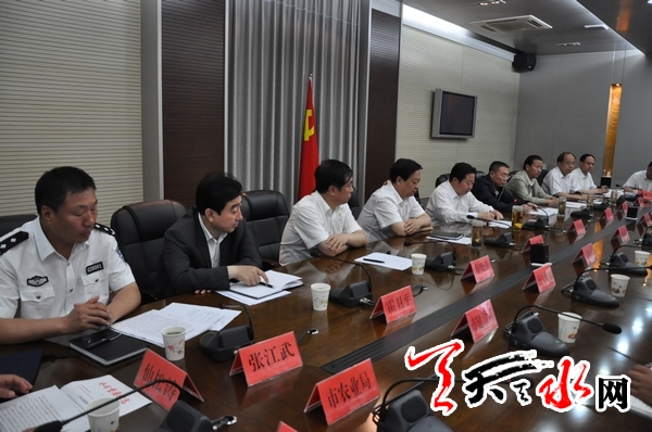 天天天水网讯【记者 孙燕芸】 6月20日下午,天水市委、市政府召开紧急会议,专题研究部署当前防汛救灾工作。市委书记马世忠主持会议并讲话,市委副书记、市长王锐,市委副书记、市政协主席杨维俊,市委常委、常务副市长郭奇若,市委常委、秘书长蒋晓强,市委常委、宣传部长彭鸿嘉,副市长霍卫平、王钧出席会议。