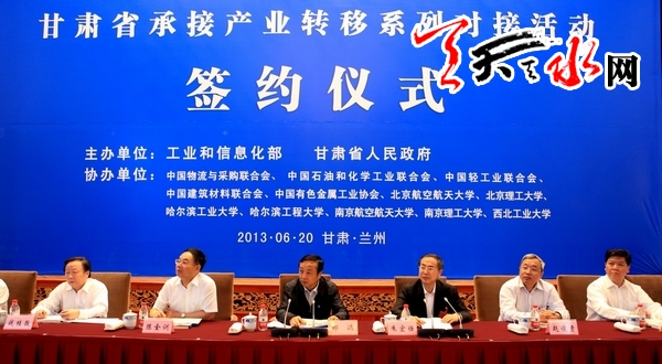 天天天水网兰州电(记者 郝勤学 孙镇)6月20日,甘肃省承接产业转移系列对接活动举行签约仪式,各省区市与甘肃省共签约产业转移项目765项,其中现场签约87项。天水市现场签约了投资10亿元的分布式燃气供热机组生产项目、投资11亿元的社棠产业孵化园、投资7亿元的“艾复康”胶囊产业化3个项目。