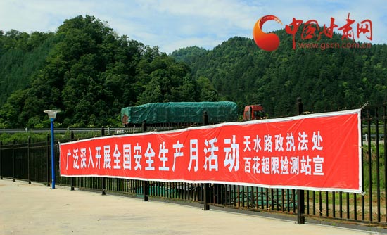 中国甘肃网6月25日讯 (记者 李雅佳 通讯员 魏强弟)为进一步做好安全生产工作,扎实开展安全生产月活动,天水市路政执法处百花超限检测站注重实效,印发了《百花超限检测站关于开展2013年安全生产月活动的通知》,成立了安全生产月活动领导小组,明确了安全生产月活动的指导思想,进一步深化了安全生产年活动,突出“强化安全基础,推动安全发展及平安交通、人人有责”的安全月主题,积极开展各项安全生产活动。